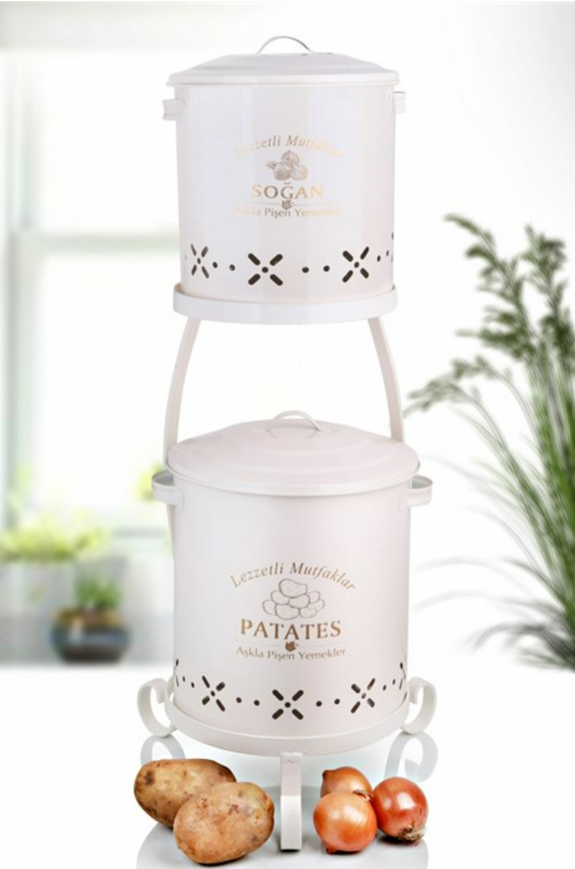 Aufbewahrungsbox im 2er Set für Kartoffel und Zwiebel weiss