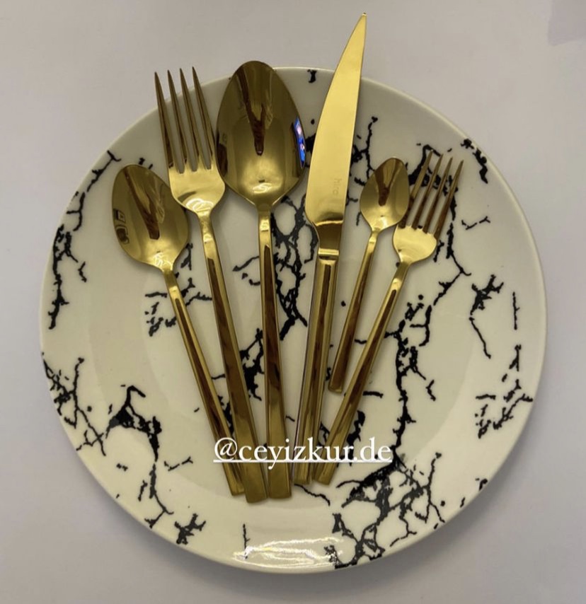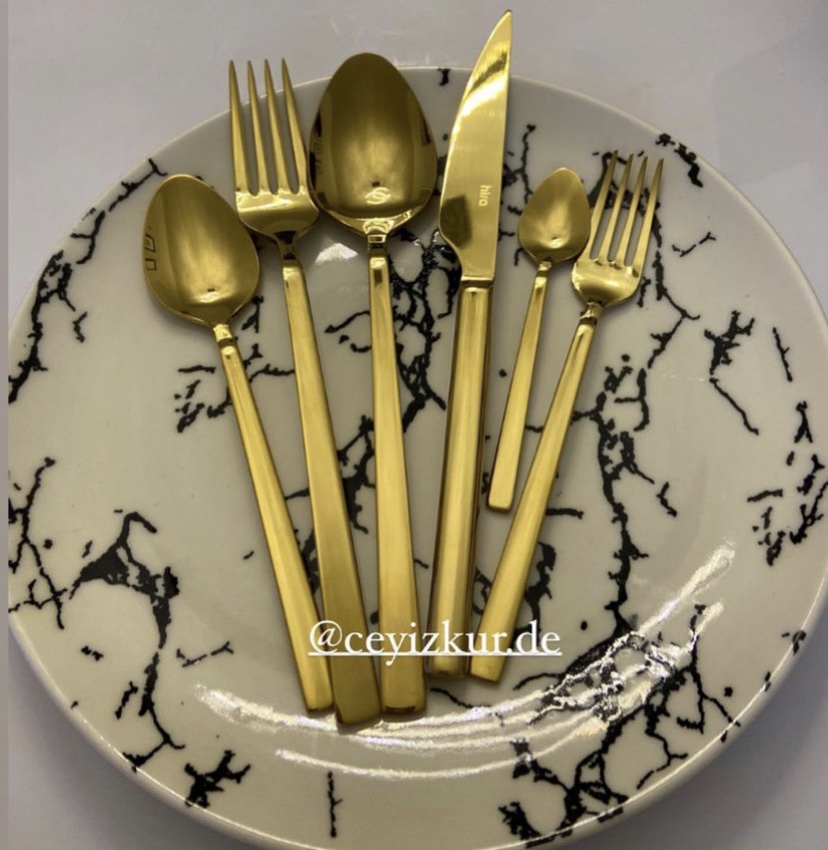 Hira Besteckset in Gold ist in einem 6 Personen Set ab sofort erhältlich.