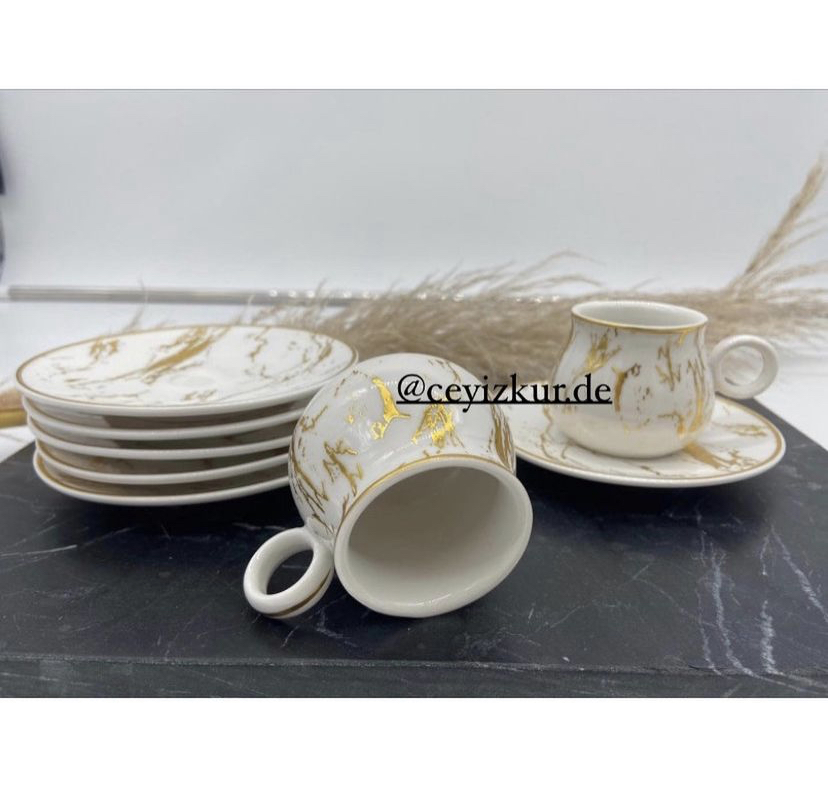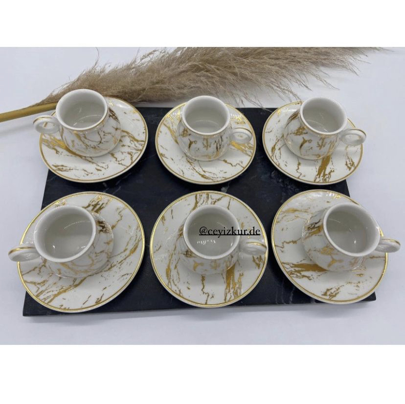 Schlagwörter: Gold, Kaffee, Kaffeetassen, Kaffeetassenset, Marmor, Mokka, Mokkatassen, Mokkatassenset, Porzellan, Weiss