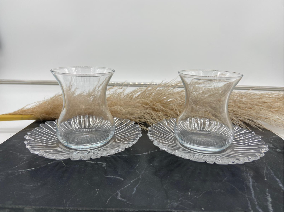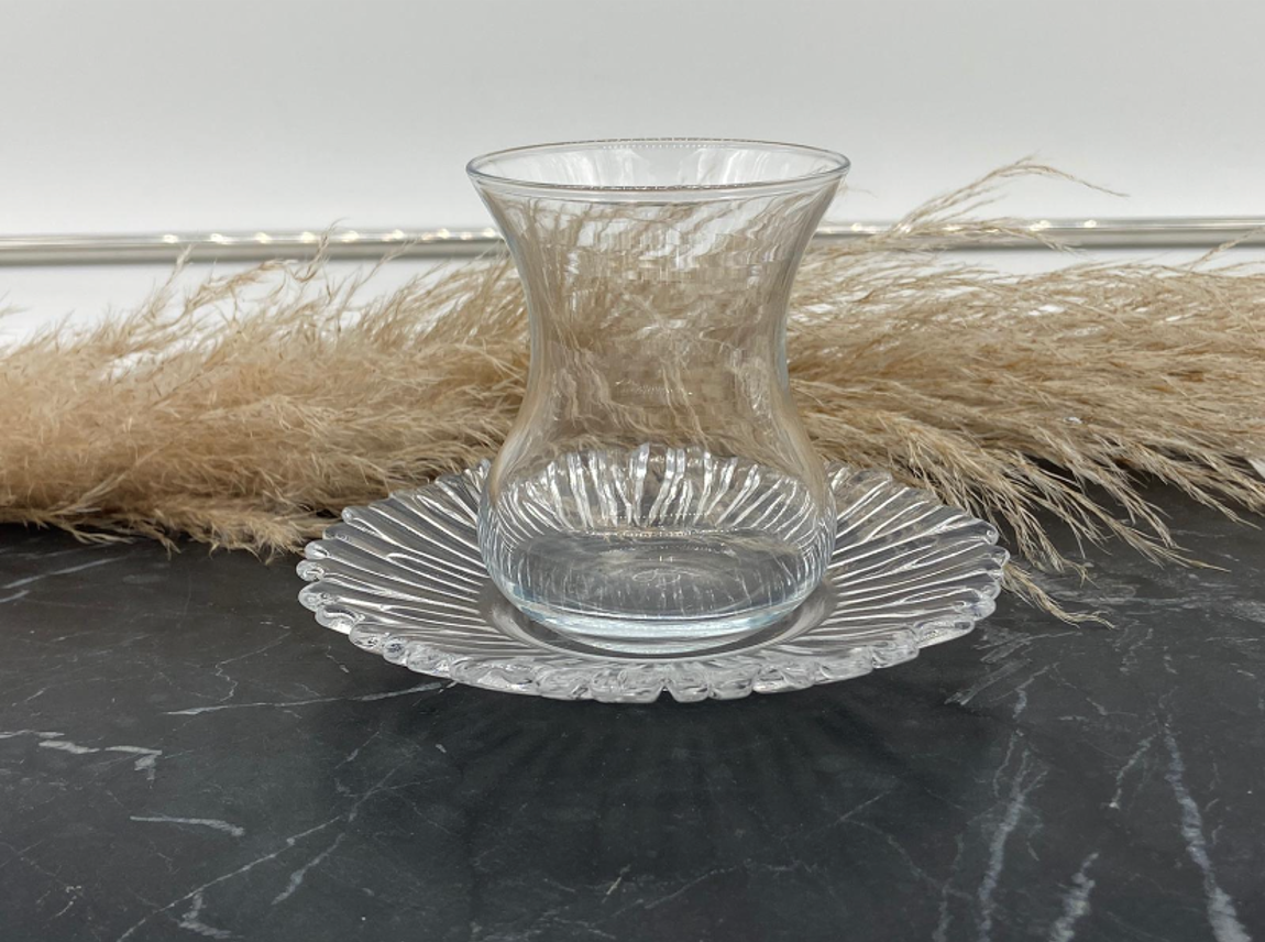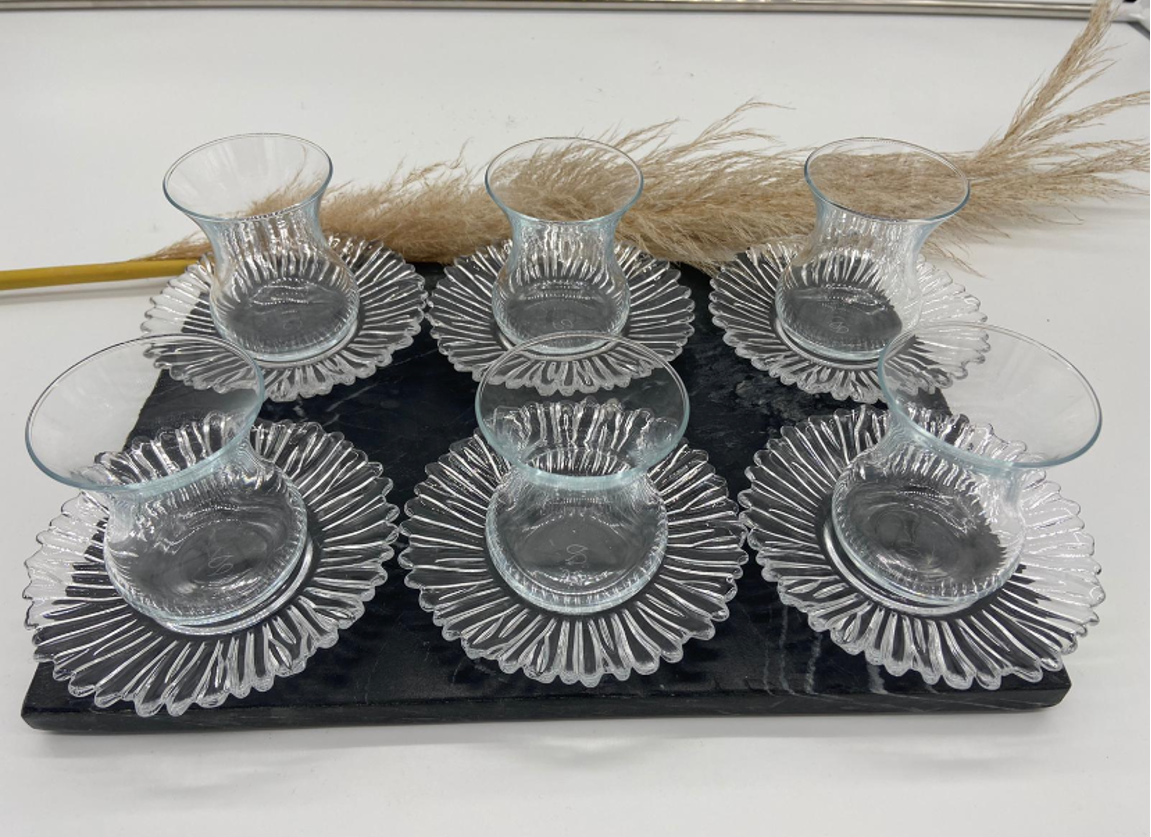 - Klassische Türkische Teegläser und Teeuntersetzer im Kristall-Design – für 6 Personen